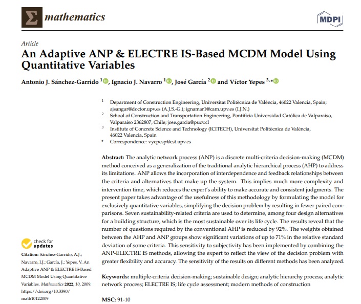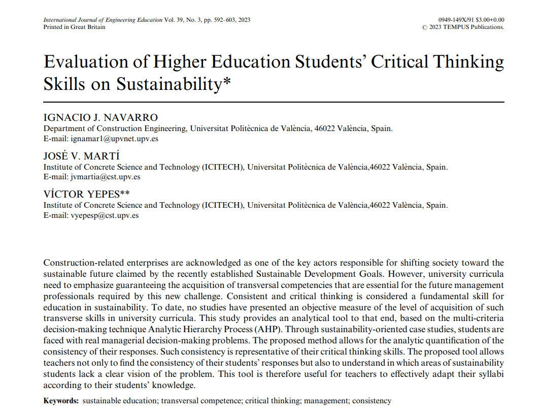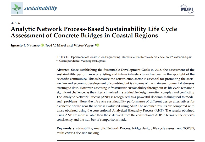 SIERRA, L.A.; YEPES, V.; PELLICER, E. (2018). A review of multi-criteria assessment of the social sustainability of infrastructures. Journal of Cleaner Production, 187:496-513. DOI:10.1016/j.jclepro.2018.03.022