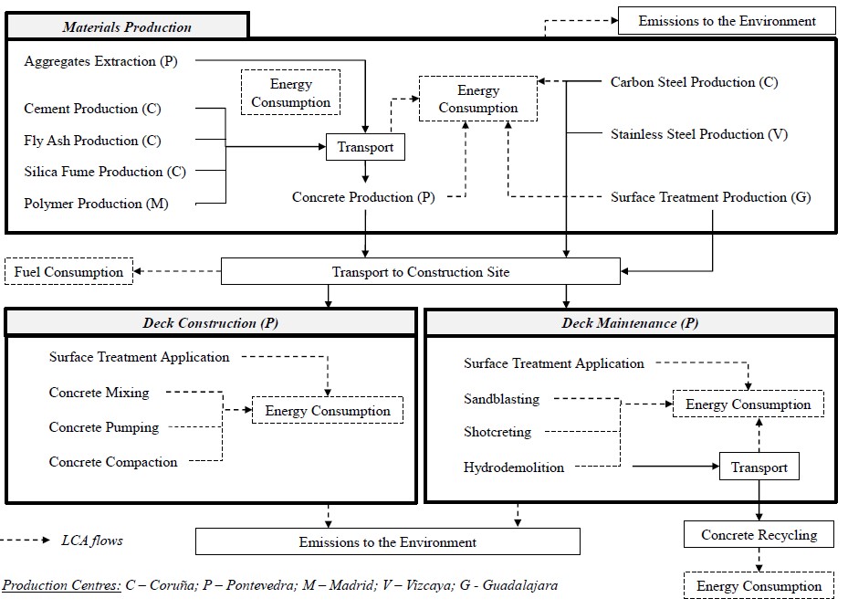 En los objetivos de desarrollo sostenible recientemente establecidos se reconoce la importancia de las infraestructuras para lograr un futuro sostenible. A lo largo de su ciclo de vida, las infraestructuras generan una serie de impactos cuya reducción ha sido uno de los principales focos de atención de los investigadores en los últimos años. La optimización de los intervalos de mantenimiento de las estructuras, como los puentes, ha despertado la atención del sector de la ingeniería civil, pues la mayoría de los impactos de las infraestructuras se producen durante la fase de servicio. Así pues, actualmente los puentes se proyectan para atender a los efectos económicos y ambientales derivados de las actividades de mantenimiento. Sin embargo, en esos análisis se suele descuidar el pilar social de la sostenibilidad. Dado que todavía no existe una metodología universalmente aceptada para su evaluación, la dimensión social no se incluye de forma efectiva en las evaluaciones del ciclo de vida de las infraestructuras. En la presente comunicación se evalúan los efectos del ciclo de vida de diseños alternativos de los tableros de hormigón de los puentes en un ambiente costero que requiere mantenimiento. Los intervalos de mantenimiento derivados de la fiabilidad se optimizan primero minimizando los impactos económicos y ambientales. En una segunda etapa del análisis, se incluye la dimensión social en el proceso de optimización y se comparan los resultados. Los resultados de optimización de estas evaluaciones combinadas se obtienen aplicando la técnica de toma de decisiones multicriterio AHP-TOPSIS. En este trabajo se muestra cómo la inclusión de la dimensión social puede conducir a estrategias de mantenimiento óptimo diferentes y más orientadas a la sostenibilidad. El enfoque tridimensional que se aplica aquí ha dado lugar a que se prefieran otras alternativas a las derivadas de la evaluación convencional que considera las perspectivas económica y ambiental. Esa conclusión apoya la idea de que se requieren evaluaciones holísticas del ciclo de vida para el diseño sostenible de las infraestructuras y de que es necesario hacer más esfuerzos urgentes para integrar la dimensión social en las evaluaciones de la sostenibilidad de las estructuras.