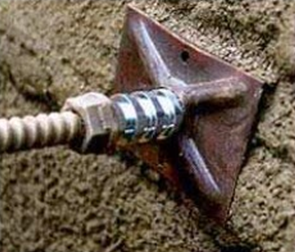 - Anclaje: Elemento de sujeción que transmite cargas de una estructura al terreno, generalmente trabajando a tracción.