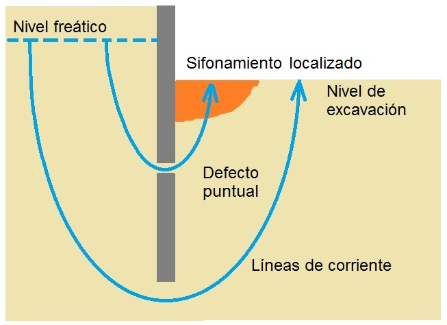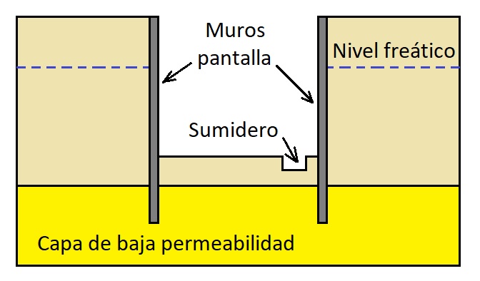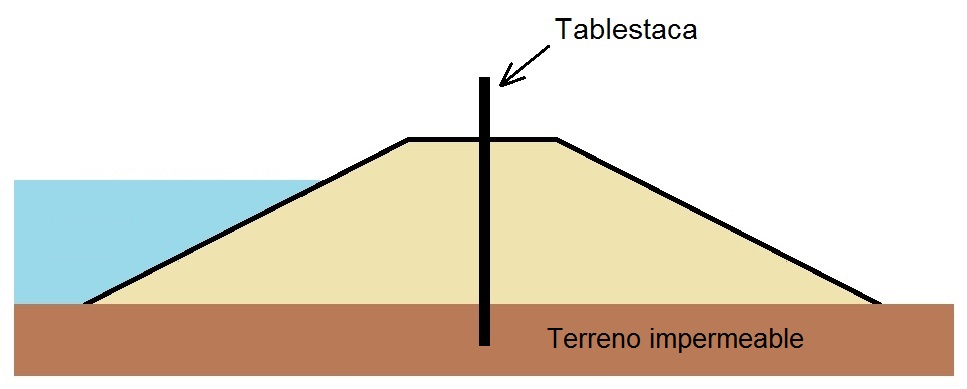 Siempre que se utilicen tablestacas, se debe garantizar su estabilización mediante apuntalamiento, arriostradas por tirantes, anclajes o cualquier otro procedimiento. Además, el empotramiento deberá ser suficiente para soportar los empujes, contener el flujo hidráulico y evitar el fenómeno del sifonamiento, entre otros. Hay que tener presente que el nivel freático desciende más rápido en el interior de la tablestaca que en el exterior, lo cual implican gradientes hidráulicos que pueden desestabilizar el fondo. Se recomienda cubrir el fondo de la excavación con una capa de arena y de grava. El agua que queda contenida en el recinto debe ser evacuada, normalmente por bombeo.