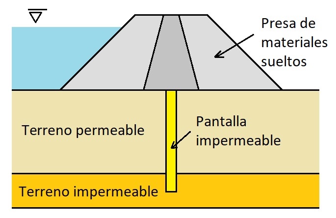 Las ataguías de tierra son diques que se usan en obras que tengan suficiente espacio y que dispongan de materiales adecuados (Figura 1). Son idóneas para pequeñas alturas de agua (sobre 3 m) que no estén en movimiento. El material no debe contener tierra vegetal y se debe compactar para lograr la mayor impermeabilidad y estabilidad.
