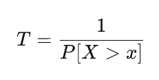 donde P[X>x] es la probabilidad anual de que un evento de precipitación exceda un valor umbral x. Por ejemplo, si una tormenta tiene un periodo de retorno de 50 años, esto significa que hay un 2% de probabilidad de que ocurra en cualquier año específico.
