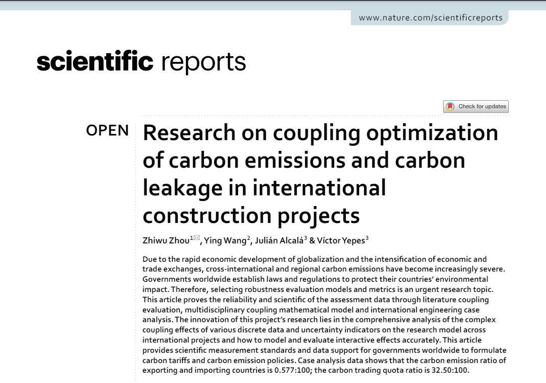 ZHOU, Z.; WANG, Y.; ALCALÁ, J.; YEPES, V. (2024). Research on coupling optimization of carbon emissions and carbon leakage in international construction projects. Scientific Reports, 14: 10752. DOI:10.1038/s41598-024-59531-4