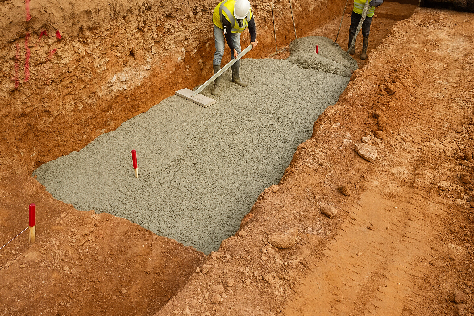 Lo habitual en obra es extender una capa de hormigón de regularización sobre la superficie del fondo de la excavación. Según el Código Estructural, los hormigones de nivelación o de limpieza de excavaciones no se consideran de naturaleza estructural y, por tanto, no están sujetos a los requisitos de resistencia mínima establecidos para otros tipos de hormigón, ya sea en masa, armado o pretensado. Sin embargo, cuando las piezas estructurales están en contacto directo con el terreno y no se ha aplicado una capa de limpieza, el recubrimiento mínimo requerido es de 70 mm, según lo establecido en el Artículo 44.2.1.1.