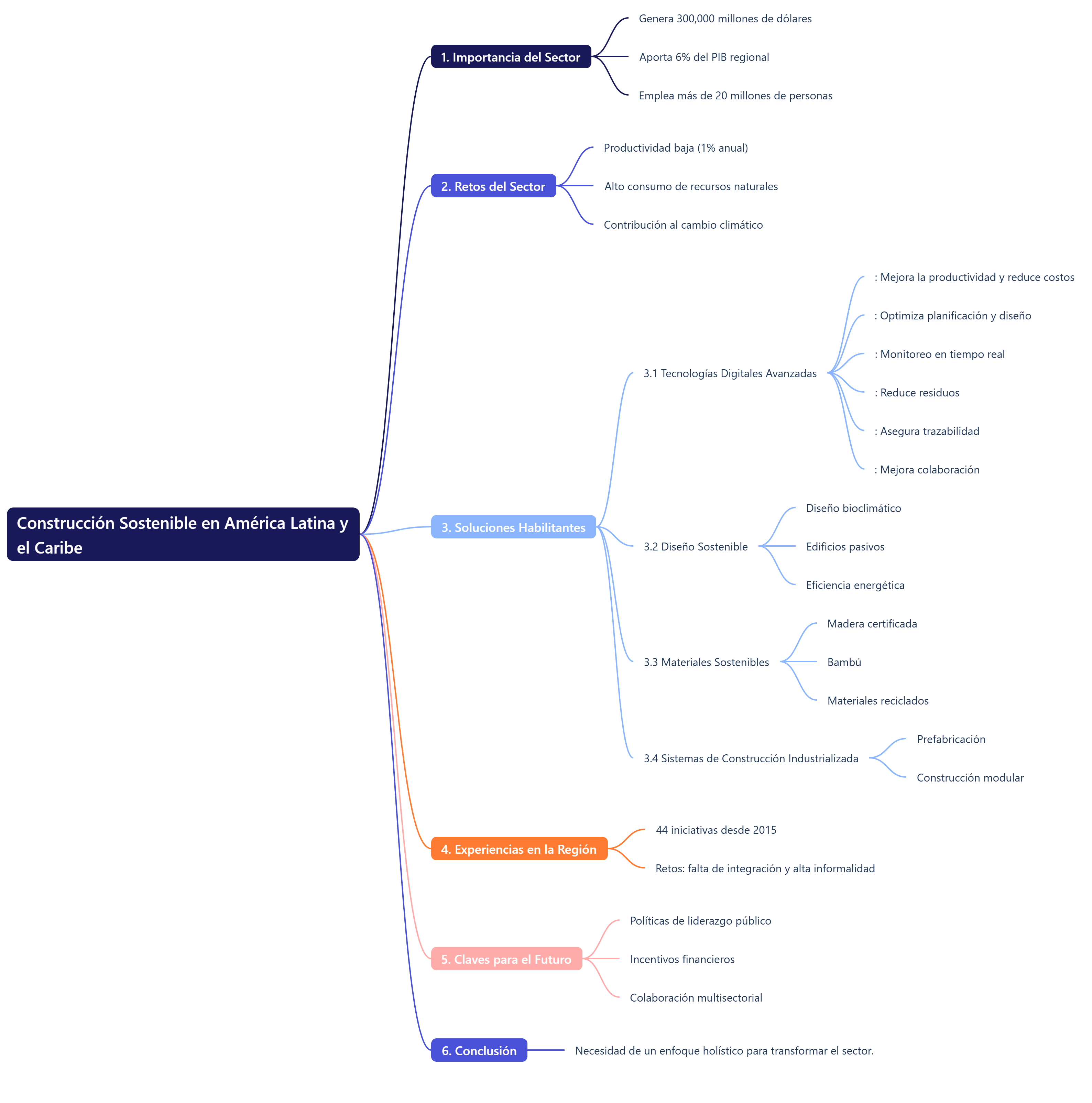 La adopción masiva de tecnologías digitales, materiales sostenibles y enfoques innovadores puede situar a Latinoamérica y el Caribe a la vanguardia de la construcción sostenible a escala mundial. Para transformar el sector de la construcción, es necesario adoptar un enfoque holístico que combine innovación tecnológica, gestión eficiente y políticas públicas. La adopción generalizada de soluciones digitales y sostenibles no solo mejorará la productividad, sino que también reducirá el impacto ambiental, lo que hará que el sector sea más resiliente y competitivo en el contexto global.