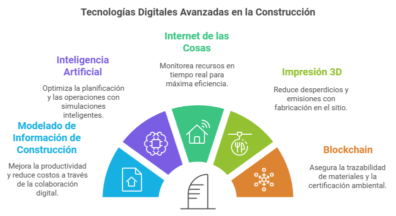 Tecnologías digitales avanzadas: Las tecnologías digitales son esenciales para mejorar la eficiencia, la transparencia y la sostenibilidad en todas las etapas del ciclo de vida de los proyectos de construcción.