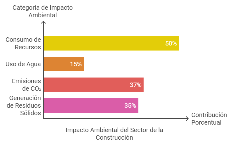 El sector de la construcción es uno de los mayores consumidores de recursos naturales y contribuye significativamente al cambio climático. Según el World Green Building Council (2023):