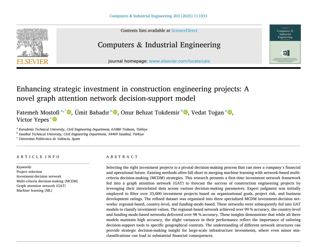 Acaban de publicarnos un artículo en la revista científica Journal of Civil Engineering & Management (indexada en el JCR, Q1) un artículo que analiza el uso de la toma de decisiones con criterios múltiples (MCDM) para evaluar y modernizar edificios, centrándose en la integración de los criterios de seguridad y sostenibilidad. Asimismo, identifica los métodos MCDM más comunes, como el AHP, el SAW y el TOPSIS, y ofrece recomendaciones para futuras investigaciones a fin de mejorar los procesos de toma de decisiones en la renovación de edificios. El trabajo se enmarca dentro del proyecto de investigación HYDELIFE que dirijo como investigador principal en la Universitat Politècnica de València.