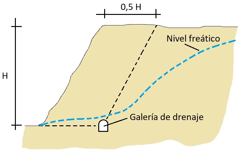 - Suelos arenosos o interestratificados que incluyan arenas (permeabilidad k = 10⁻³ a 10⁻⁵ m/s).