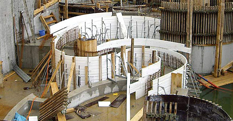 El sistema de encofrados flexibles y modulares se diseña para estructuras de hormigón con formas curvas u orgánicas. Estos encofrados se componen de paneles de un textil plástico que incluye filamentos de PVC y poliéster o fibra de vidrio, junto con una estructura interna articulada de PVC. El proceso de instalación y uso es sencillo: solo se necesitan insertar los puntos de anclaje o “puntos guía” en los paneles siguiendo la geometría deseada. Son soluciones prácticas, pues son resistentes y reutilizables. Además, contribuye a reducir el desperdicio de materiales generado por la creación de encofrados personalizados para estructuras de hormigón especiales.