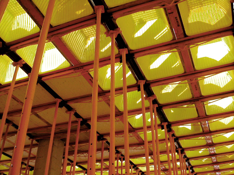 - Forjados in situ: Empleados en la construcción de losas y forjados bidireccionales, ya sean macizos o aligerados. Requieren la instalación de un encofrado y un apuntalado o cimbrado integral. Además, el aligeramiento, como en el caso de los casetones, puede ser recuperable o perdido.