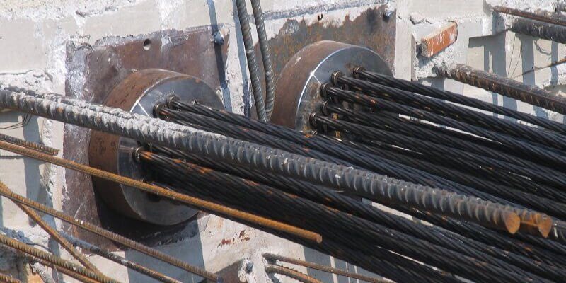 - Resistencia del hormigón: El hormigón debe alcanzar una resistencia mínima especificada de 27,5 MPa para el hormigón HP-35. Este valor, que suele alcanzarse a los siete días, es necesario para que el hormigón soporte las altas cargas concentradas en los anclajes y para limitar las pérdidas de pretensado a largo plazo.