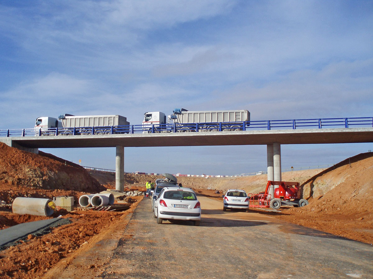 - Otros elementos: La construcción se completa con la colocación del firme (pavimento asfáltico) y de las juntas de calzada en los estribos.