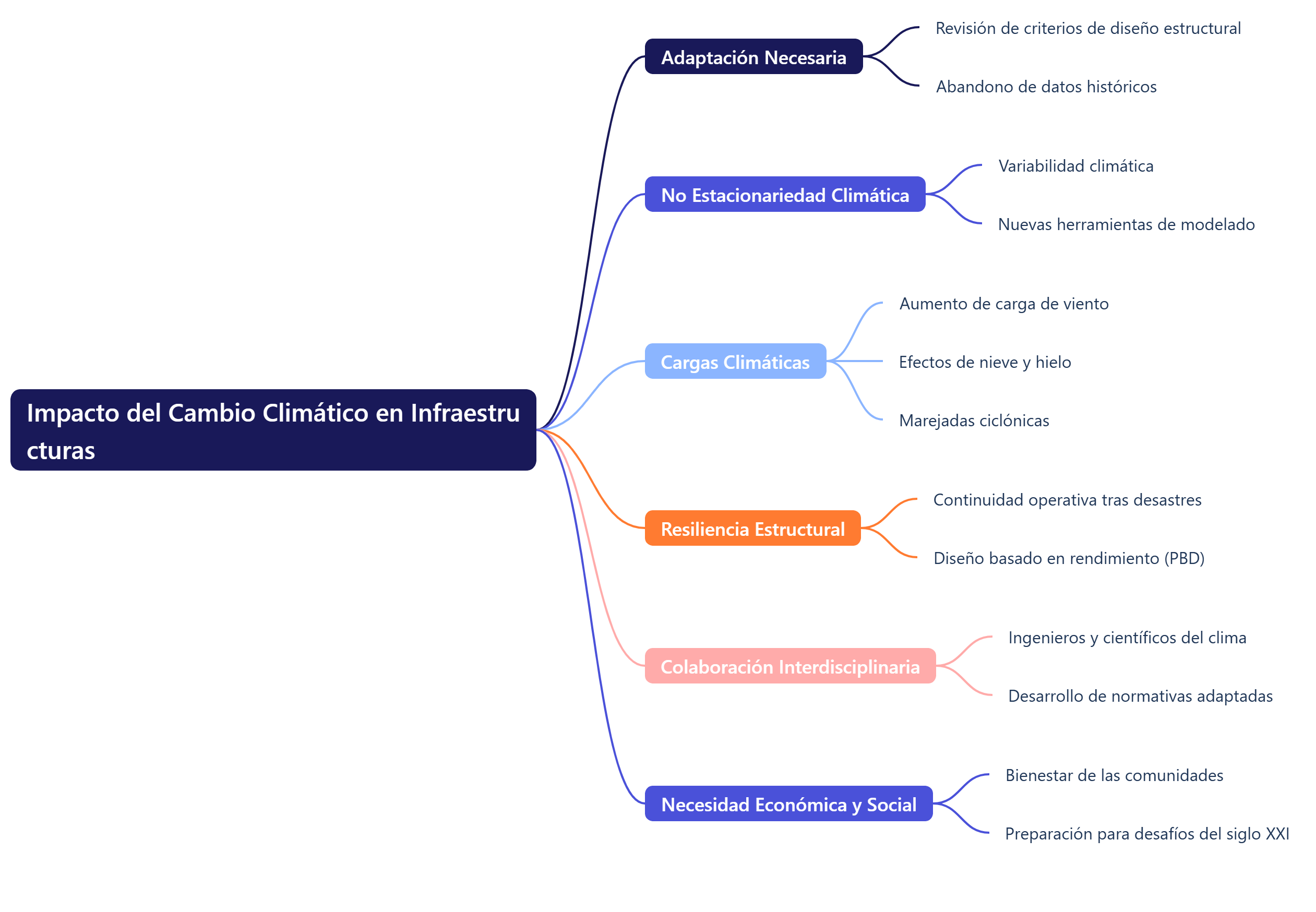 La evidencia científica sobre el impacto del cambio climático en la infraestructura es concluyente y requiere una revisión exhaustiva de los criterios de diseño estructural. La dependencia exclusiva de datos históricos ya no constituye una estrategia viable en un contexto donde la frecuencia e intensidad de eventos extremos están en constante aumento. Por ello, es necesario implementar análisis probabilísticos, actualizar periódicamente los mapas de cargas climáticas y adoptar estrategias de resiliencia estructural. Estos cambios son fundamentales para garantizar la seguridad y funcionalidad de las infraestructuras en el futuro.