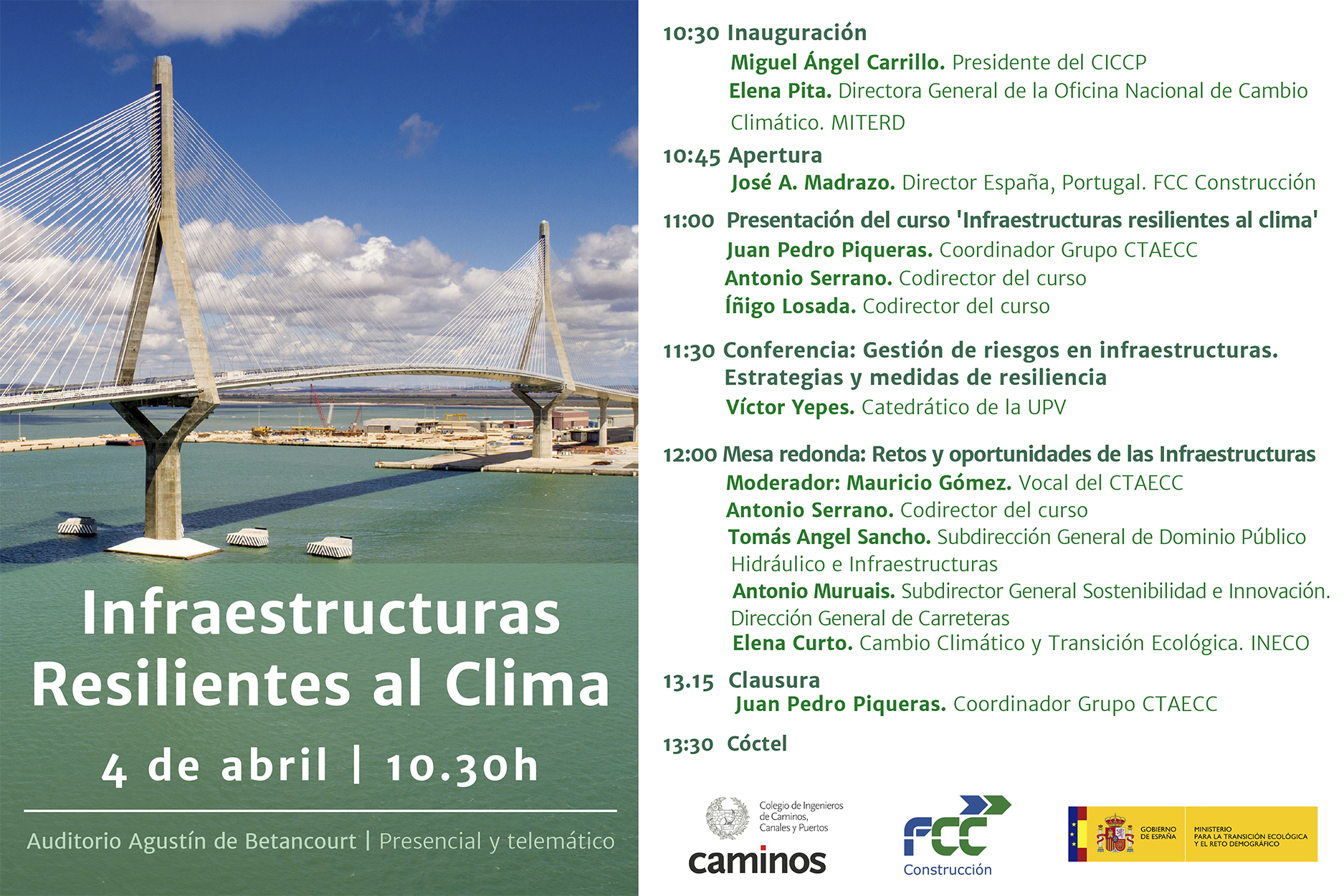 Los cambios en las condiciones climáticas pueden afectar a las infraestructuras y a su resiliencia de diversas maneras. ASCE (2018) identificó los tipos de impactos relacionados con el clima que deben abordarse, en particular, los relacionados con las inundaciones (el aumento de los niveles, de las velocidades de flujo y de las alturas de las olas), con las precipitaciones (las acciones de lluvia y nieve en los techos y el aumento de las acciones de las heladas en las estructuras) y con el viento (la mayor intensidad y frecuencia de tormentas y huracanes). El Manual de Práctica 144 de ASCE (ASCE, 2021) utiliza métodos probabilísticos para el análisis y la gestión de riesgos en los proyectos para abordar las incertidumbres dentro de un horizonte temporal. Este enfoque incluye la identificación y el análisis de riesgos, fallos del sistema, probabilidades asociadas y consecuencias, incluyendo pérdidas directas e indirectas, cuantificación de fallos y recuperación para la resiliencia, efectos en las comunidades, la economía de la resiliencia y las tecnologías para mejorar la resiliencia tanto en infraestructuras nuevas como existentes.