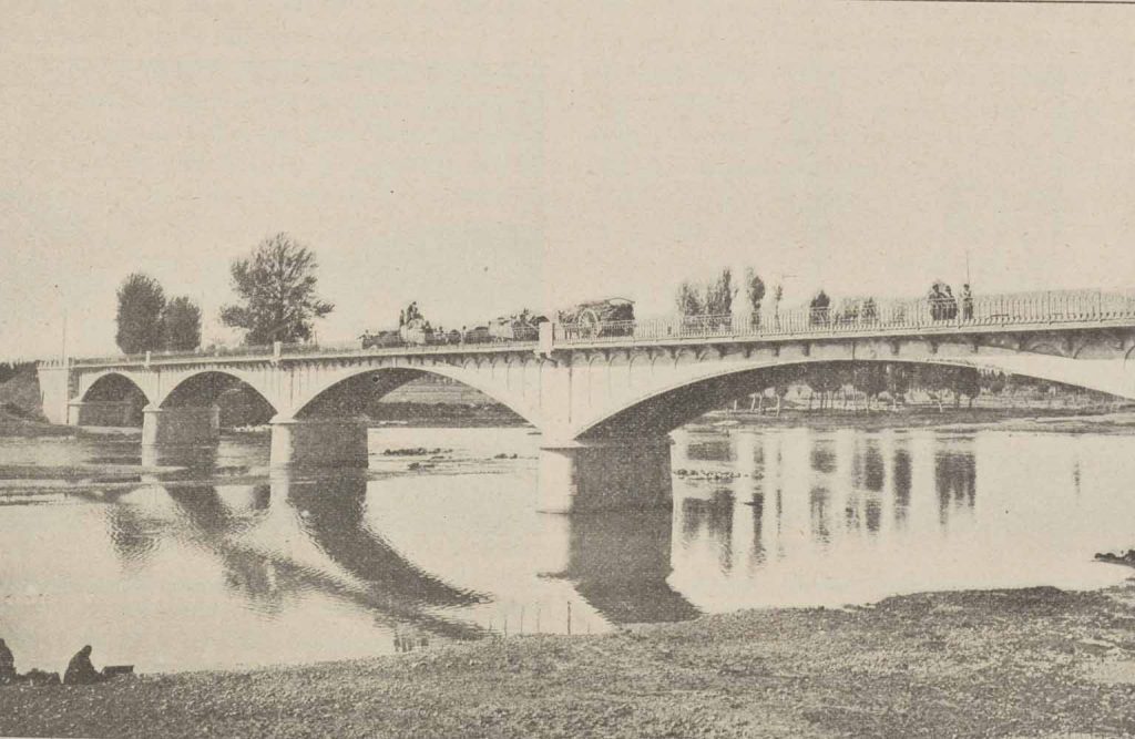 El primer puente de hormigón armado diseñado por Hennebique y la obra más importante de este tipo construida hasta entonces fue el puente Camille de Hogues, erigido entre 1899 y 1900 en Châtellerault sobre el río Vienne. La estructura mide 140 metros de largo y está formada por tres arcos rebajados empotrados; el arco central es el de mayor tamaño y tiene una luz de 50 metros.