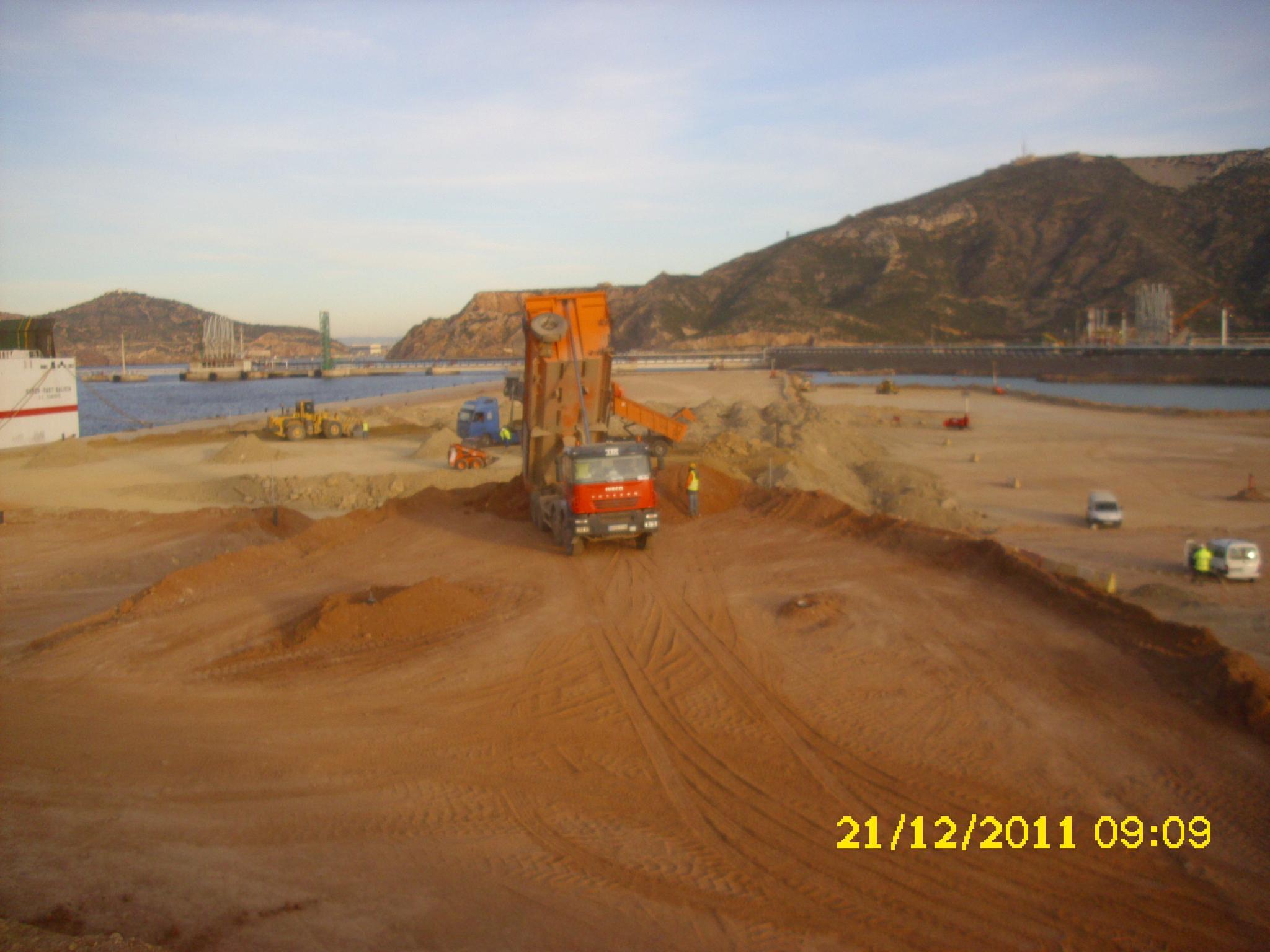 La precarga es eficaz para mejorar casi todos los suelos, tanto secos como saturados. Se ha utilizado en suelos naturales, como arenas sueltas y limos, arcillas limosas blandas, limos orgánicos, turbas y depósitos aluviales erráticos, así como en suelos artificiales formados por materiales dragados sin compactar, residuos industriales (cenizas) y depósitos de residuos urbanos. Los suelos sobreconsolidados, es decir, aquellos sometidos a una carga mayor que la actual, no responden tan bien a la precarga, puesto que su comportamiento es más elástico que el de los suelos normalmente consolidados. La técnica más habitual para mejorar la compacidad de los rellenos portuarios realizados con material proveniente del dragado es la realización de precargas. En la Figura 3 se muestra el uso de la precarga en la construcción del Muelle de Baleares en el Puerto de Tarragona.