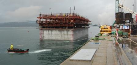 Otro aspecto importante es la verificación de la armadura de cortante exigida por la norma EHE. La experiencia acumulada indica que esta armadura suele ser innecesaria, aunque la norma EHE la imponga. Un análisis al respecto puede verse en el artículo de Pita, Grau y Pérez sobre el diseño de cajones flotantes (http://www.fhecor.es/wp-content/uploads/ARW/ES_OBRASPORTUARIAS.pdf). También sería resaltable el trabajo de investigación realizado por el CEDEX sobre el comportamiento del hormigón de los cajones flotantes en la zona de carrera de mareas. Los resultados pueden verse en la revista Puertos, en su número 136 del año 2006 (http://www.puertos.es/export/download/ROM_PDFs/RecomendaCAJONES.pdf).