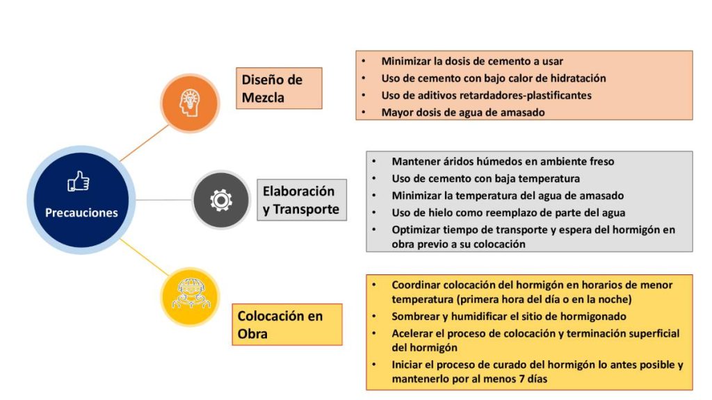 En la Figura 3 se resumen las precauciones que deberían adoptarse cuando se hormigona en tiempo caluroso.