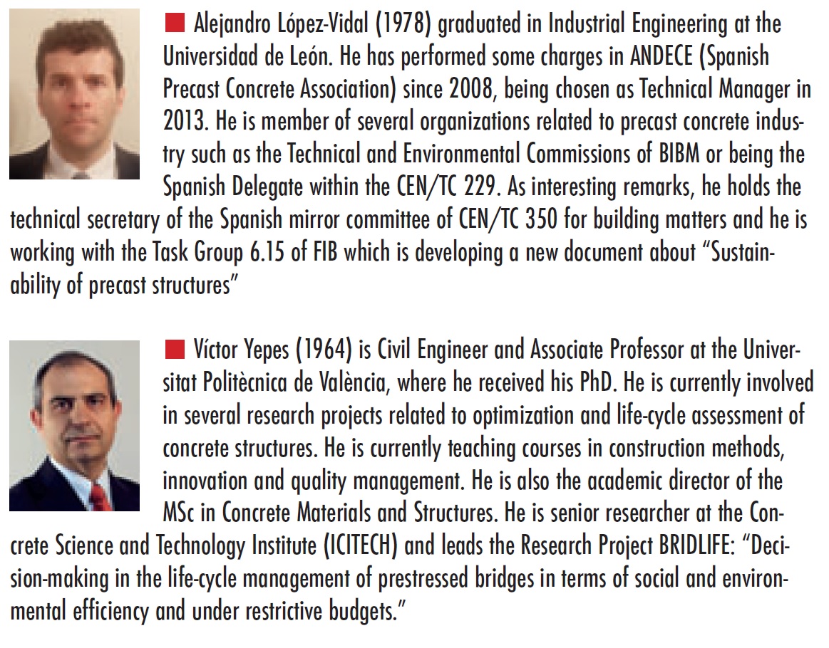 PENADÉS-PLÀ, V.; MARTÍ, J.V.; GARCÍA-SEGURA, T.; YEPES, V. (2017). Life-cycle assessment: A comparison between two optimal post-tensioned concrete box-girder road bridges. Sustainability, 9(10):1864. doi:10.3390/su9101864 (link)