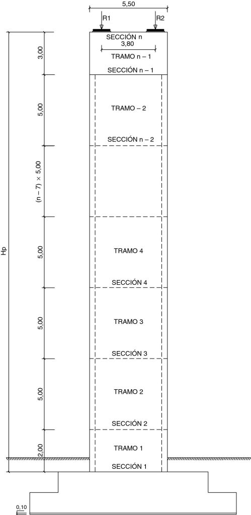 Las cuantías medias necesarias de acero y hormigón, tanto en alzado como en cimentación, para las pilas estudiadas varían entre 887 kg/m y 12 m³/m para alturas de 40 m a 2720 kg/m y 26 m³/m en alturas de 100 m.