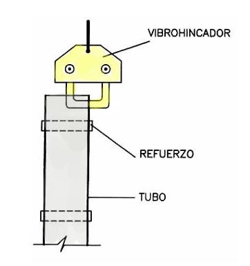 Figura 1. Esquema del acoplamiento del vibrohincador al tubo de acero.