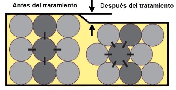 Figura 3. Reordenación de los granos durante la compactación (cortesía de Menard).